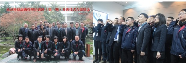 在开班仪式上,公司运营总监徐总宣读了决定成立高级培训班的文件;参加培训人员向公司领导报告了班级六层次发展规划,并现场进行宣誓合影;公司经营层领导分别对全体学员提出建议和要求;公司董事长、总经理高总作了重要讲话,对全体学员提出了更高的期望和要求,他要求大家深刻领会“自强不息,厚德载物”、“穹究于理,成就于工”、“高高山顶立,深深海底心,蓝天碧水,舍身奉献”三句话,从修心开始,提升管理修为,为易态的发展,为人类蓝天碧水梦的实现贡献力量。