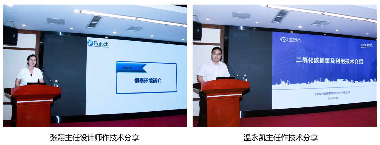 成都易态科技有限公司绿色工艺研究院副院长王绅以“YT硫酸法碳酸锂生产绿色工艺”、四川长虹润天能源科技有限公司总经理冯辉以“锂电回收处置与资源化再利用”、四川恒泰环境技术有限责任公司主任设计师张翔以“新一代低温抗水耐硫抗碱SCR催化剂介绍”、东方电气集团东方锅炉股份有限公司环保工程室主任温永凯以“二氧化碳捕集及利用技术介绍”为题作了技术分享。